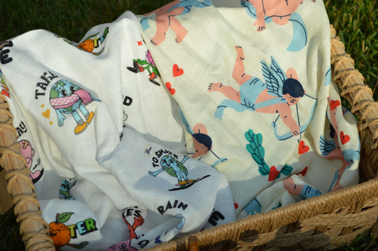 Retro Party + Tiny Cupids Bamboo Muslin Swaddle Duo